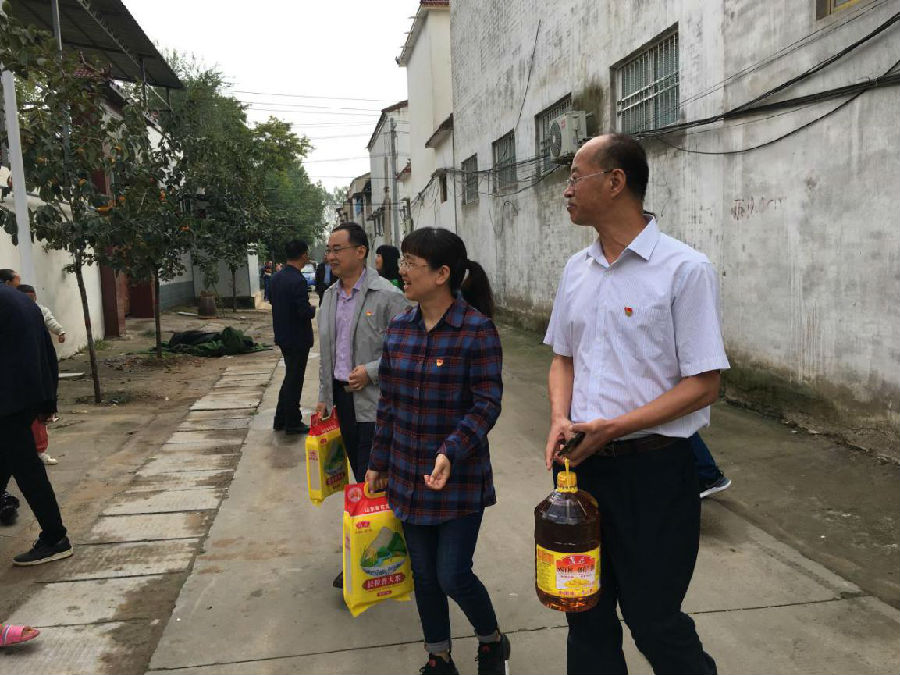 刘华一行到邢庄乡屈楼村看望慰问贫困户,为他们送去米、油等慰问品。每到一户刘华都关切地询问贫困户的身体健康状况、家庭收入情况、子女就学情况等,勉励他们坚定信心,勇于克服困难,保持乐观积极的生活态度,努力改善家庭生产生活条件,早日实现脱贫致富。