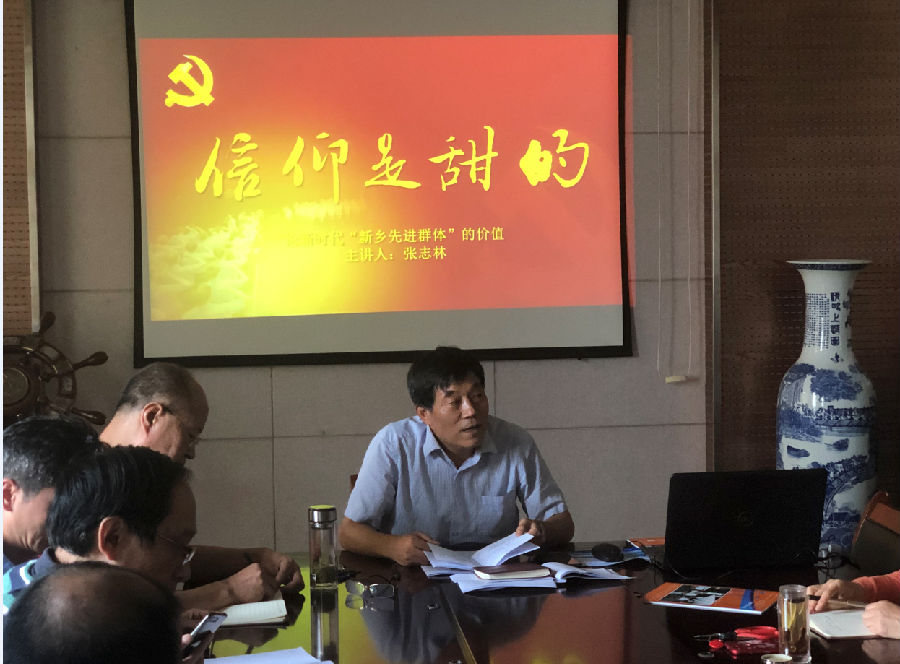 7月16日下午,按照“不忘初心、牢记使命”主题教育活动计划安排,教研室主任张志林以“论新时代“新乡先进群体”的价值”为题给党员干部职工上了一堂生动的党课。教研室各部室全体同志参加党课学习。