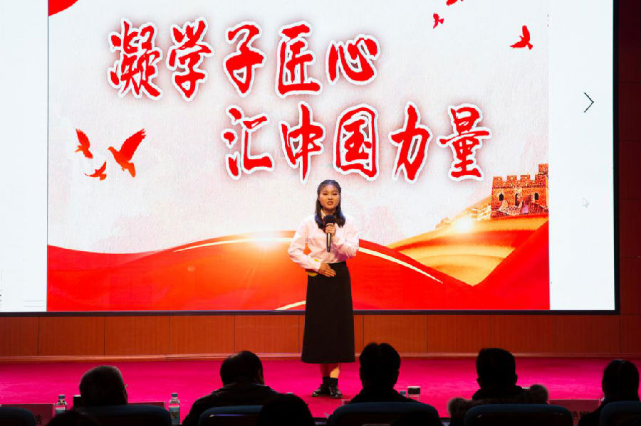 第45届世赛工业控制项目铜牌获得者贺江涛在闭幕式上发言。他勉励同学们一定要学知识、练技能,作为技工院校学生,练就一技之长,用技能为梦想插上翅膀。
