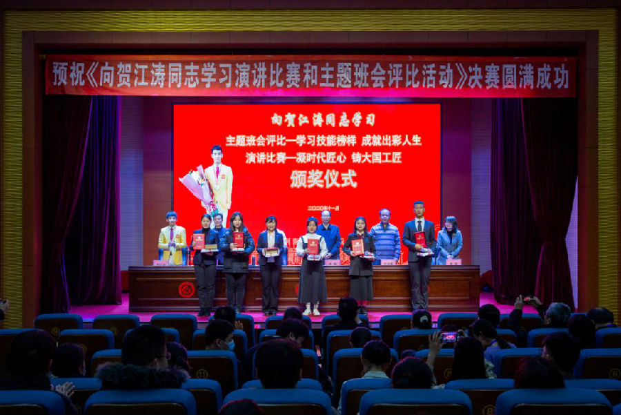 “向贺江涛同志学习演讲比赛和主题班会评比活动”闭幕式现场