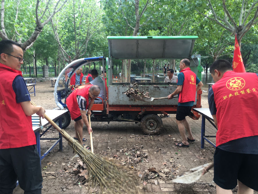 近日,郑州出现持续强降水天气,全市普降大暴雨,并引发洪涝灾害。为贯彻落实省人社厅党组指示精神,切实做好灾后环境清理,方便群众出行,确保“大灾之后无大疫”,结合单位党史学习教育“我为群众办实事”活动安排,河南省职业技术培训教研室(省职业技能鉴定指导中心)班子主动作为、迅速行动,于7月22日下午组织开展了“学雷锋环境卫生清理”志愿活动。
