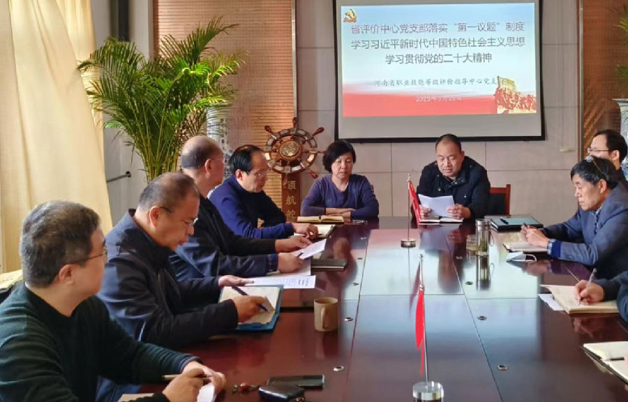 3月23日下午,省评价中心召开全体党员大会,学习习近平新时代中国特色社会主义思想和党的二十大精神。支部书记刘华主持会议并讲话,胡国全、聂蕾组织学习二十大报告精神相关文件。
