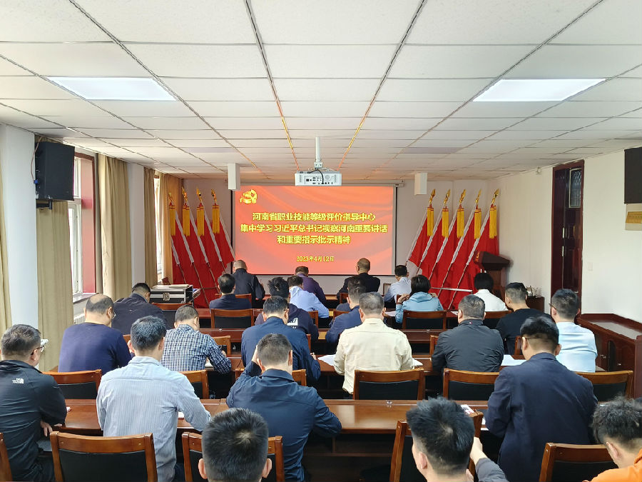 4月12日上午,省评价中心组织集中学习习近平总书记视察河南重要讲话和重要指示批示精神,支部书记刘华同志主持会议,在郑全体党员、干部参加。