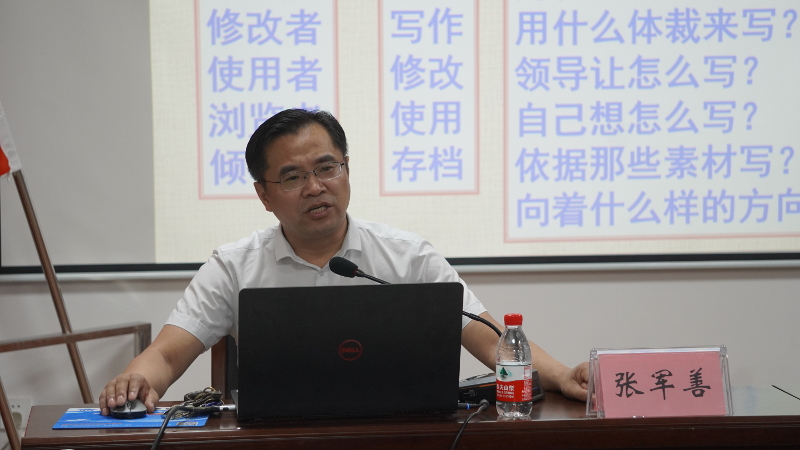 任海军指出,张军善处长的授课有高度、有深度、更有温度,为中心全体人员呈现了一堂方法实用、干货满满的精彩授课。任海军要求全体人员要认真消化吸收授课内容,坚持学习,注重研究,以此次培训班为契机,着力提升自身文稿撰写水平,为锻造成为“五会型”干部夯实基础。