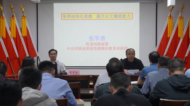 5月26日上午,省评价中心开展“五会型”干部综合能力提升培训班,进一步学习贯彻习近平新时代中国特色社会主义思想主题教育,深化主题教育效果,提升党员、干部的能力素质。本次培训邀请民进河南省委参政议政处处长张军善授课,中心主任任海军主持会议。